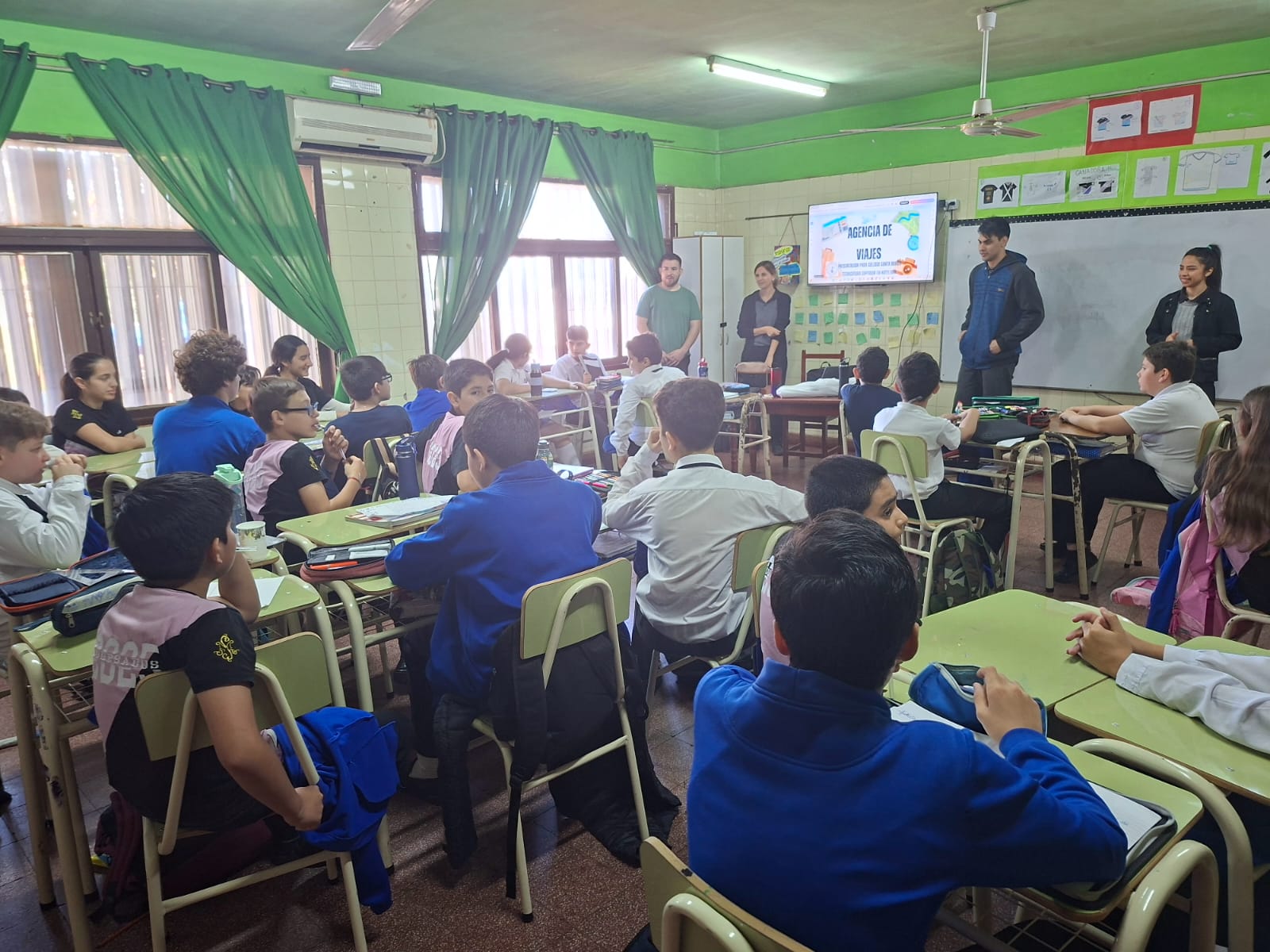 La profesora Inés Schauvinhold, junto con estudiantes de tercer año de la Tecnicatura Superior en Hotelería del ISFD Virasoro, brindaron una interesante charla sobre los ambientes y paisajes de América Latina, enfocándose especialmente en las agencias de turismo. Agradecemos su colaboración en el Proyecto de Aula Abierta del Colegio Santa María. Esta actividad fue realizada en el marco de Ciencias Sociales para estudiantes de 6º grado del nivel primario.